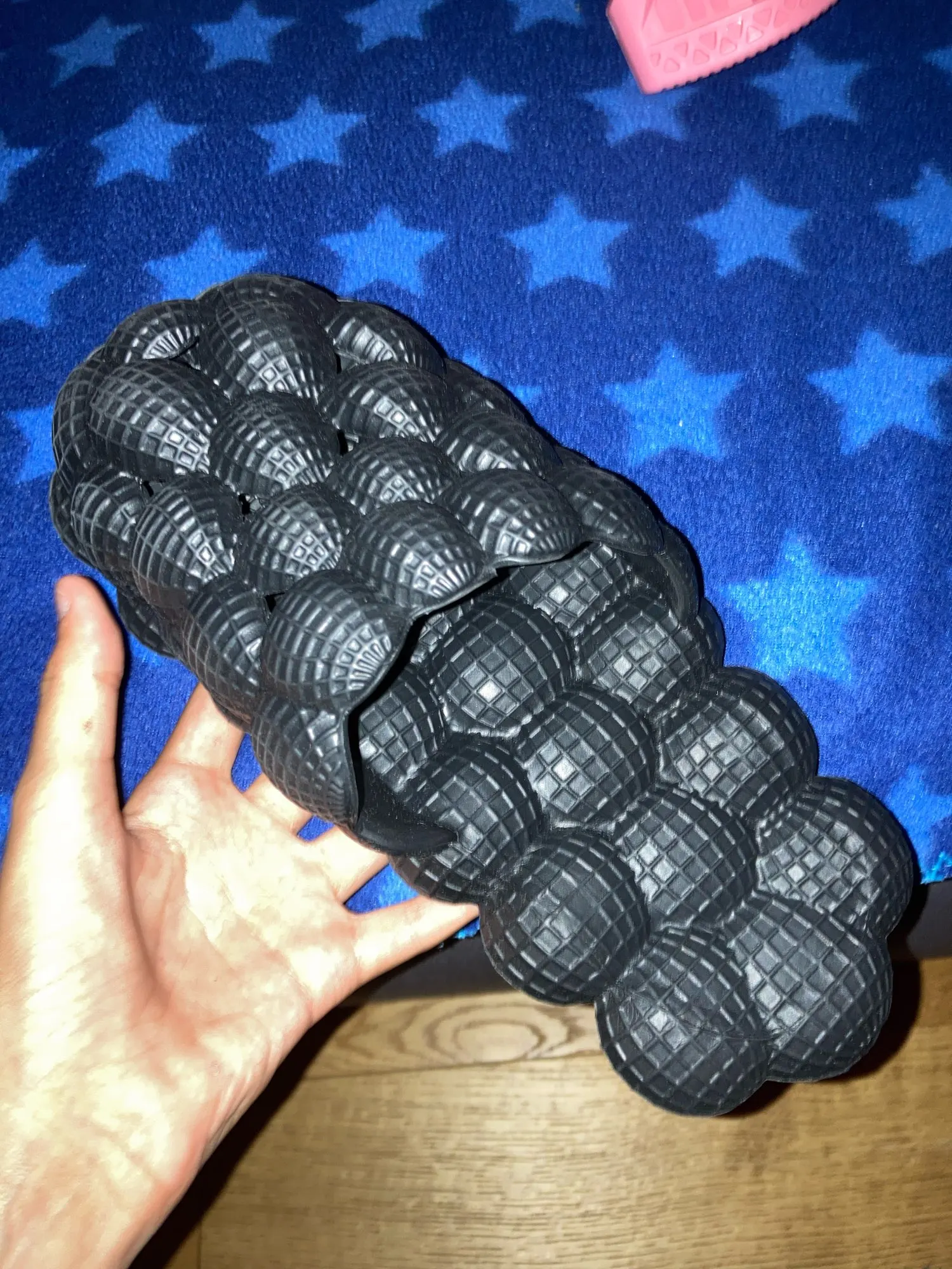 Hergestellt aus weichem, gepolstertem EVA-Material bieten diese Slides unschlagbaren Komfort und Support. Das weiche Bubble-Design massiert deine Füsse bei jedem Schritt – perfekt für ganztägiges Tragen!